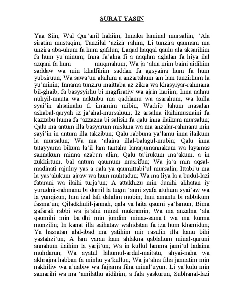 * bacaan surat yasin lengkap dengan terjemah indonesia, untuk dibaca kapan saja dan dimana saja.* home » apps » books & reference » surat yasin indonesia 3.5 apk. Surat ini turun di kota mekkah sehingga disebut sebagai surat makkiyah. Surat yasin lengkap arab, terjemah indonesia, dan latin (untuk bantu yang belum lancar arab). Selecting the correct version will make the surat yasin indonesia app work better, faster, use less battery power. Surat yaasiin atau yasin ini biasanya dibaca oleh masyarakat indonesia di malam jumat.